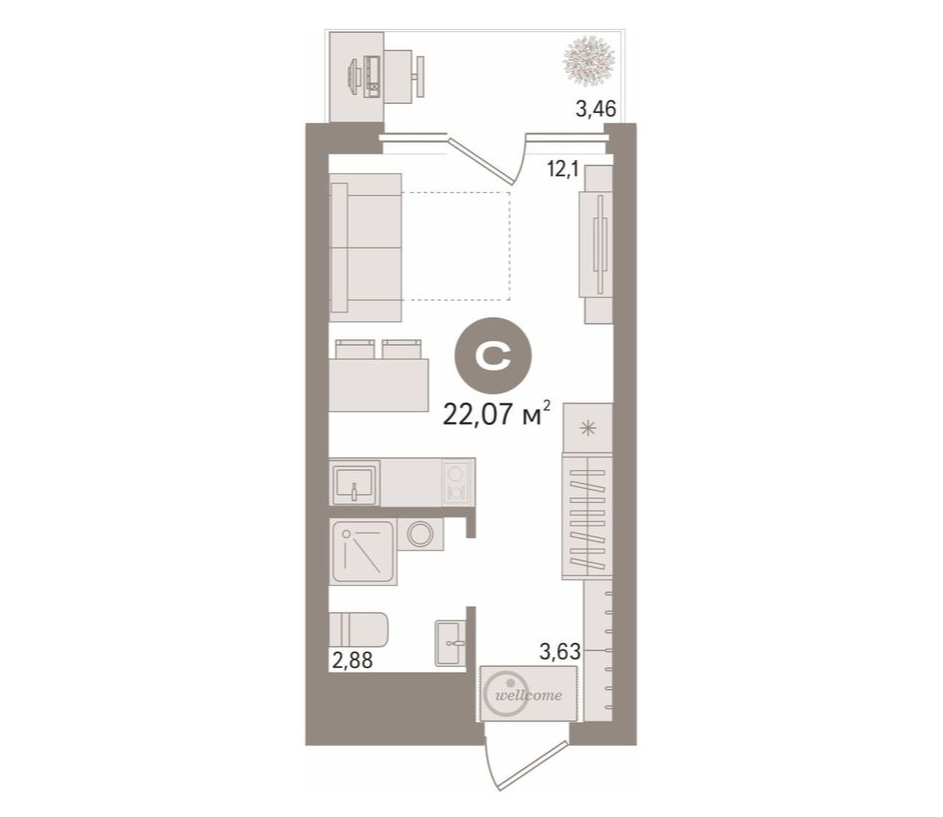 · Площадь: 22,1 кв. м.