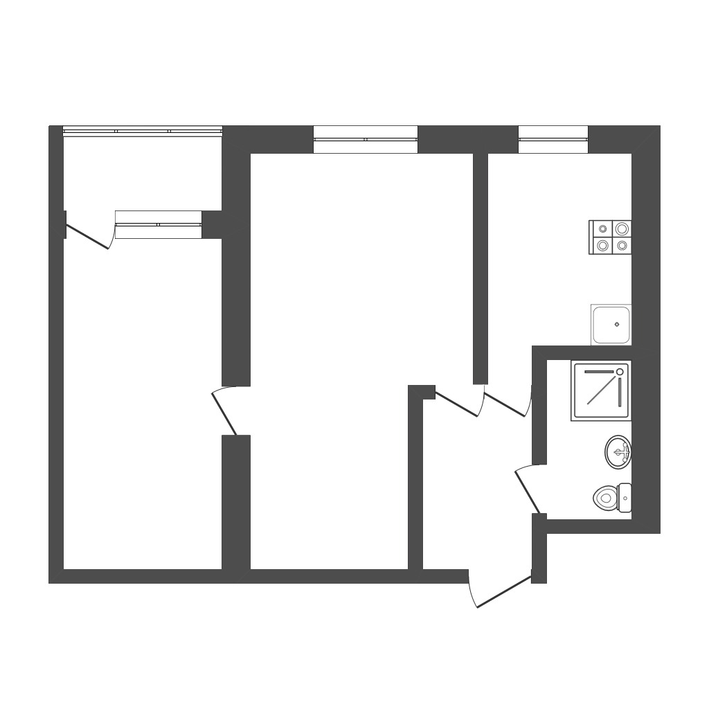 - Комнаты смежные, удобная планировка для перепланировки под отделённую спальню и гостиную.