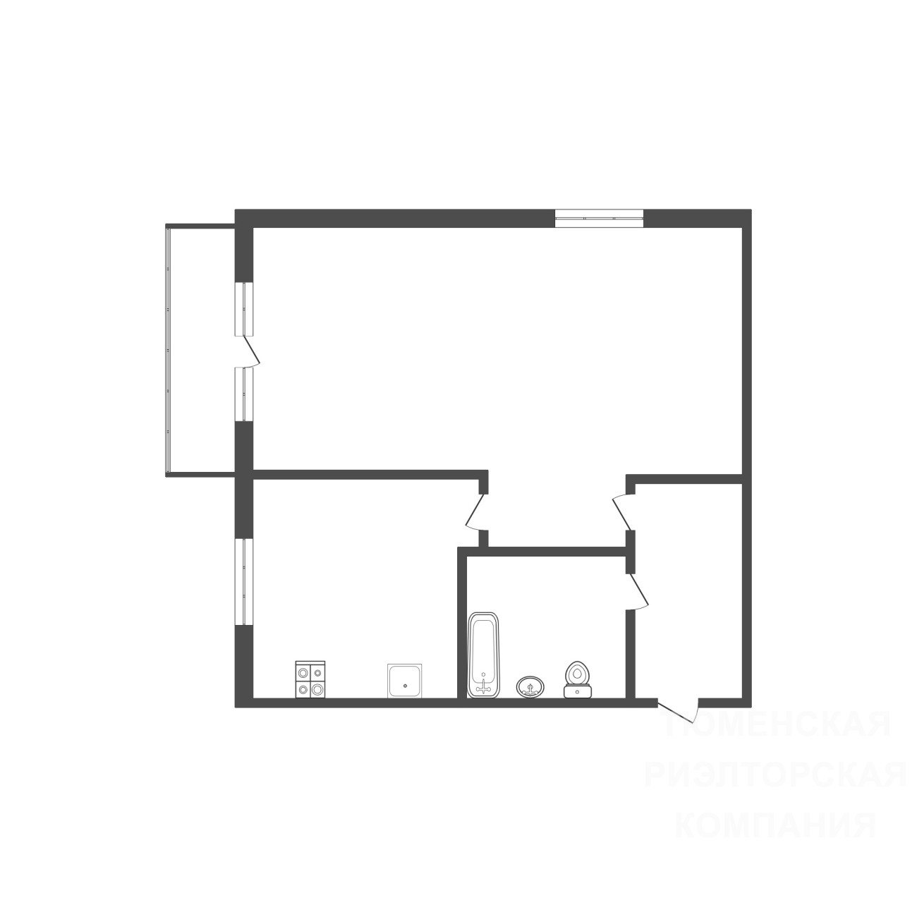 • Площадь: 33 кв. м. (кухня 6 кв. м.).